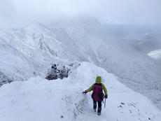 3.北稜を懸垂中 4.主稜トラバースが見えない
