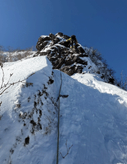 赤岳山荘までの運転は毎回緊張。雪も少なめ凍結無しで助かりました。気温は高めで身支度整えスタートです。ひたすら黙々と歩きます。私は久々の行者小屋。テント撤収の方々やこれからアタックするクライマーたち。日の出前は凍てつく寒さもあり私は一気に緊張してきた。目指す阿弥陀が日に照らされ眩しいくらい。装備を整えいざ取付きまで急ぎます。遠目で2パーティくらいかと思いましたが着いてみると4パーティくらいいてびっくり。巻いて行く方もいました。30分くらいは待ちましたがとにかく天気が快晴、無風でだいぶ助けられました。後続も到着。本当に北稜は大盛況!!いざ私たちの番になり、谷内さんリードで開始です。1ピッチ目の最初が怖かったです。グローブを厚めの物にしていたので、岩を掴んでいる感覚がなくて、次回は薄めにしようと。スムーズに2ピッチ目も終え、今シーズン2回目の快晴阿弥陀岳登頂出来ました。山頂は本当に穏やかで無風なくらい。下山は中岳沢。私はこの山頂直下が1番怖かったです!!!良い経験が出来ました。取付き渋滞に会いましたが、全体的にスムーズに行けて駐車場に着くのも早かったです。
