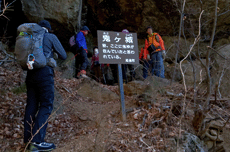 明治から、葡萄作りが始まったという勝沼の葡萄畑の坂道をくねくねと上り、その奥細い林道を大滝不動尊神社まで車で入る。駅から縦走すると2時間かかるーと。