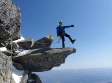 7時過ぎに駐車場へ着くもかなりの人。外国人が目立ちました。バスは1便には乗れず結局3便で。ロープウェイも思っていた便には乗れずスタートは1時間遅い10時スタートに。とにかく取り付きに早く着かなくてはと支度も急ぎ汗だくになり取り付きへ。なんとか後続に越されず1番で着きました。準備をしていると後続も到着。危なかったー。1ピッチ目リーダーの谷内さんの行くのを見ながらドキドキしながら私たちも続きます。核心は1ピッチだけで2ピッチ目はフリーでも行けそうなところでした。